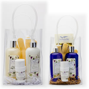 Lotion gift bags are available in Jasmine, Elderberry, Fragrance Free, and Cabernet variations. Our Natural Bar Soaps are also now available in a bundle!
